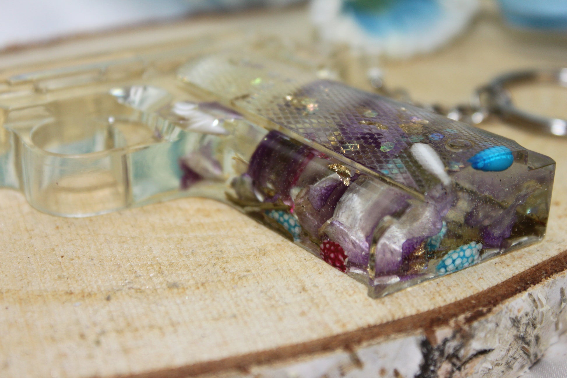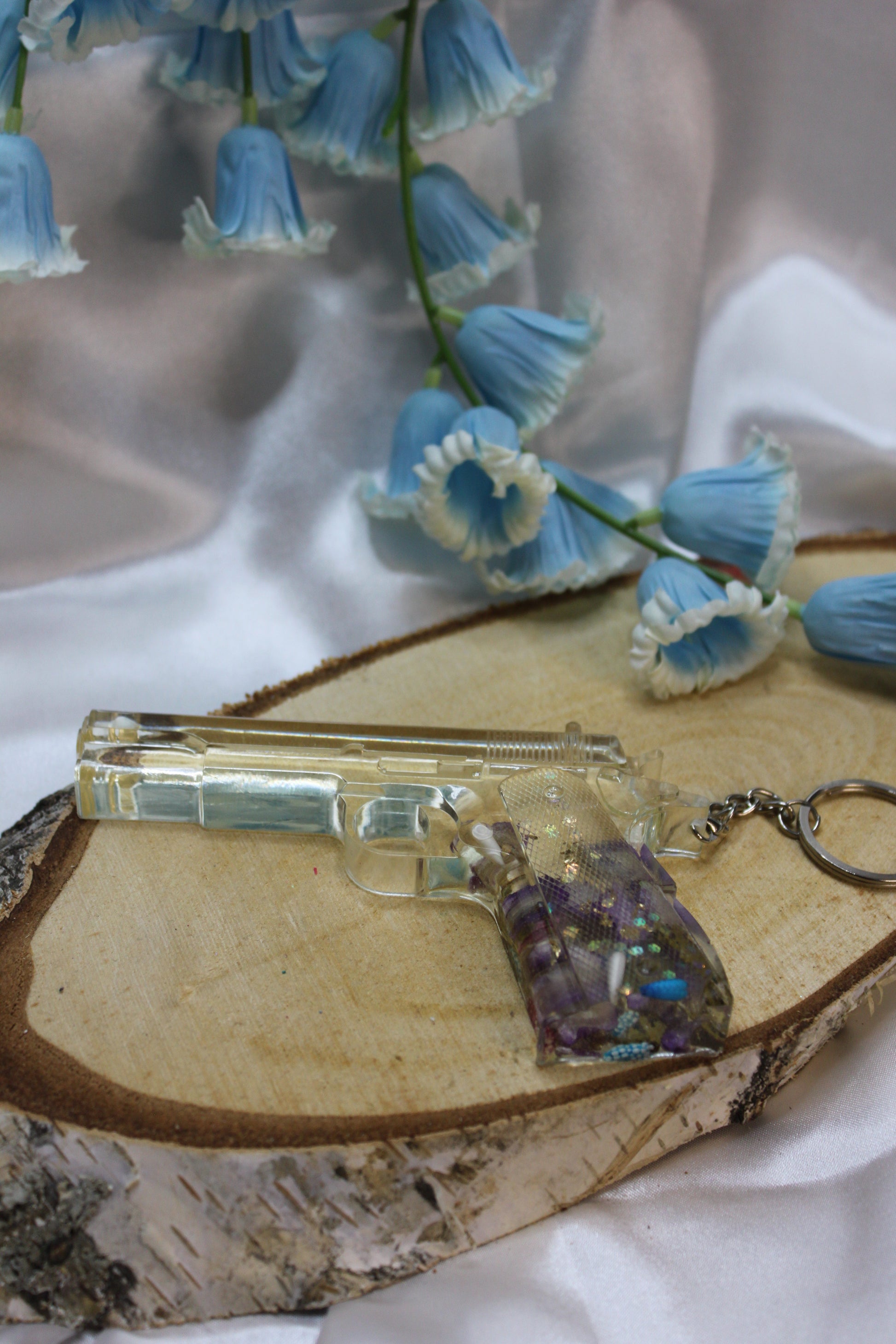 FAKE GUN en résine époxy avec fleurs séchées incrustées dans le manche.