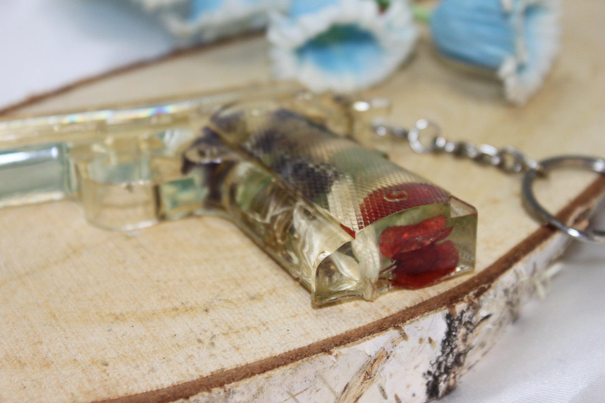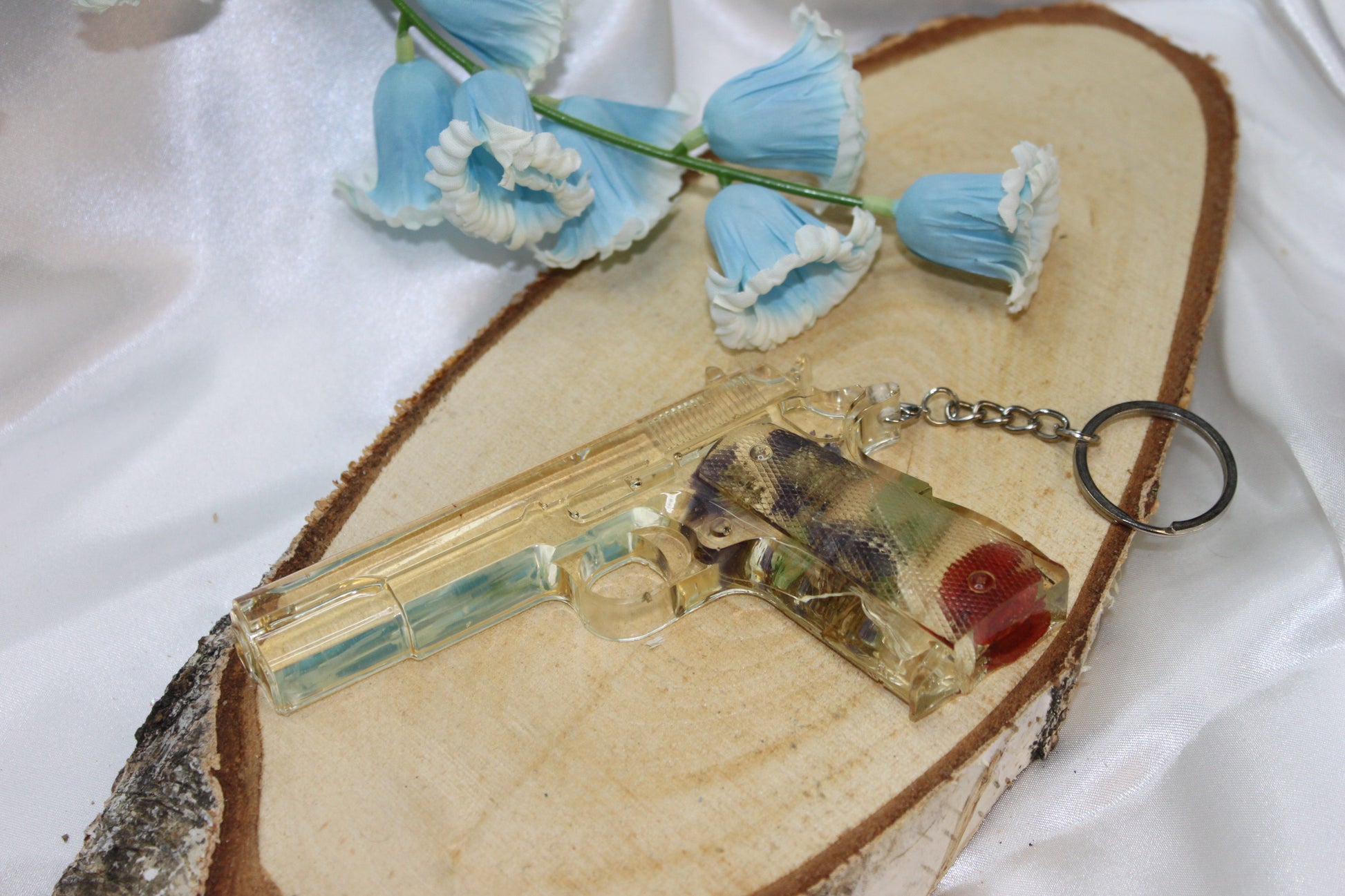 FAKE GUN en résine époxy avec fleurs séchées incrustées dans le manche.